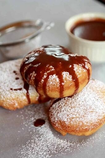 Save RecipeVegetarianJanuary 11, 2013Beignetsโฆ.filled with Chocolateโฆ..then drizzled with Chocolate Hazelnut Sauce