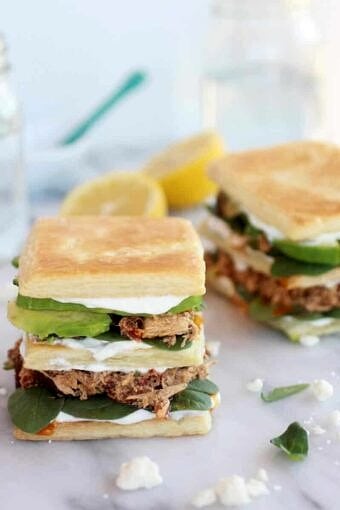Greek Tuna + Sun-Dried Tomato + Avocado Napoleons