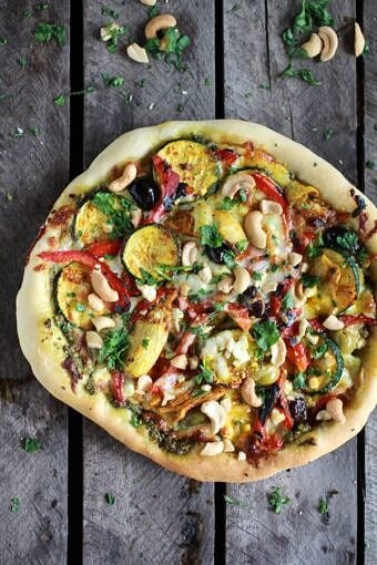 Save RecipeMain CourseAugust 7, 2013Simple Crispy Basil Caramelized Garden Vegetable + Fontina French Bread Pizza