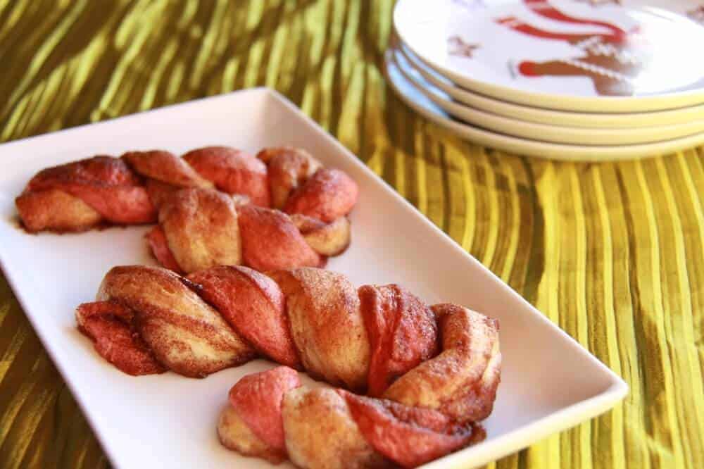 These candy canes are so freaking goood! I mean their buttery cinnamon sugar filling is enclosed in that tight twist. Eaten warm right out of the oven with a drizzle of vanilla glaze. Holy Yum! Not to mention they are so fun! Just look how cute they are!