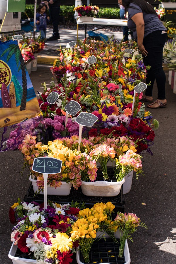 I got up early Saturday morning and went for a “power walk” around the bay and then back down the boardwalk. I wanted to get back because I had big plans to hit up the Little Italy Farmers Market in downtown San Diego. Honestly, I think this is what I was most looking forward to about this trip. I LOVE farmers markets and this one did not disappoint. I dragged everyone outta bed and told the boys I’d buy em breakfast if they came. They pretty much jumped at that. So we all packed in the car and headed downtown. I was basically in flower and produce heaven, and am still dreaming about all the fresh berries. It was amazing…I took lots of photos as you can see.