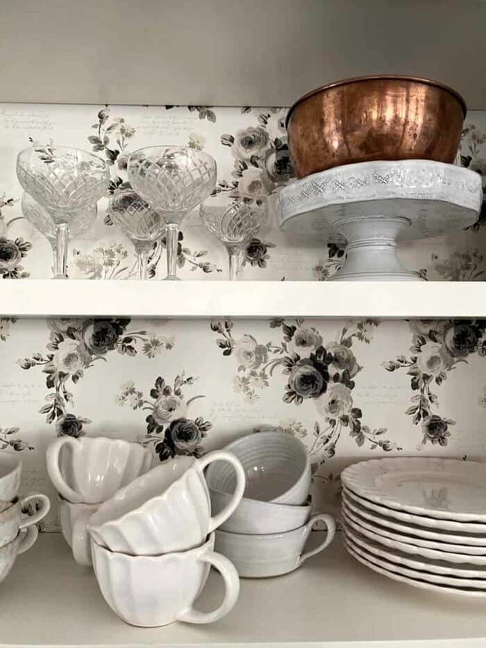 New wallpaper in our kitchen cabinet.