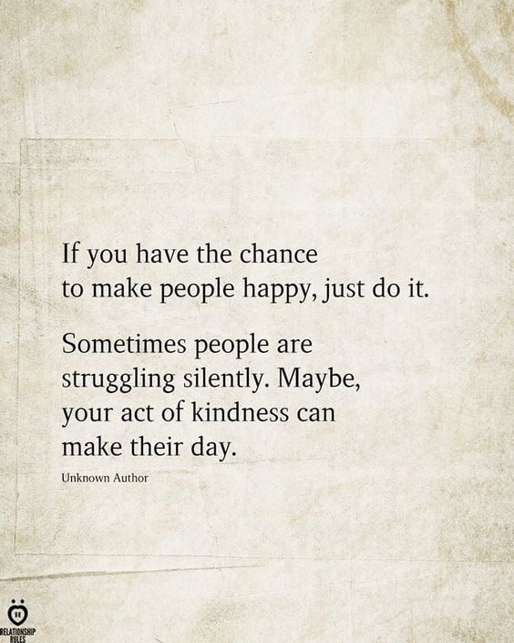 Be kind, bring others up, give back as much as possible, do something nice for someone. Trust me, you will be happier.