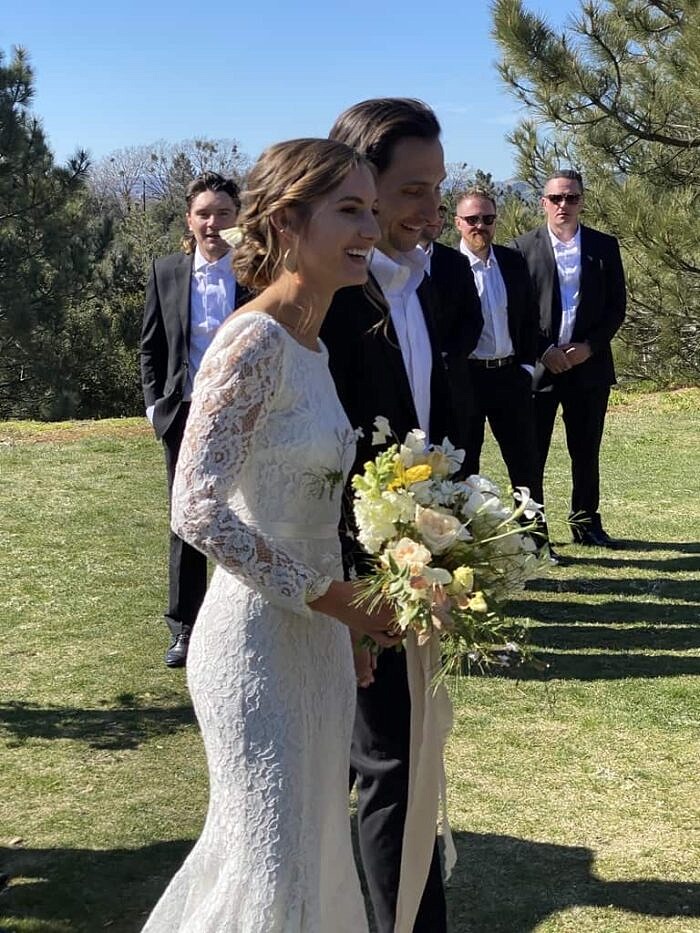 The bride and groom – Matthew and Caroline (all my brothers were the groomsmen)