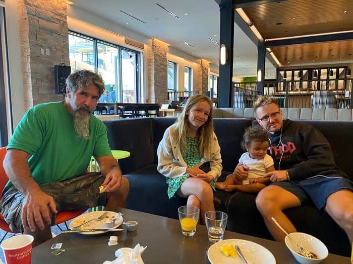 (Dad, Asher, Oslo, and Creighton after breakfast)