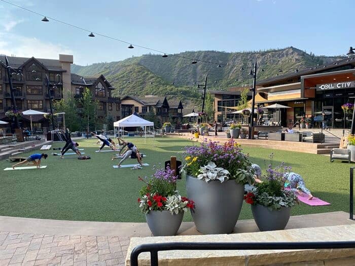 (yoga in the courtyard of the Limelight)