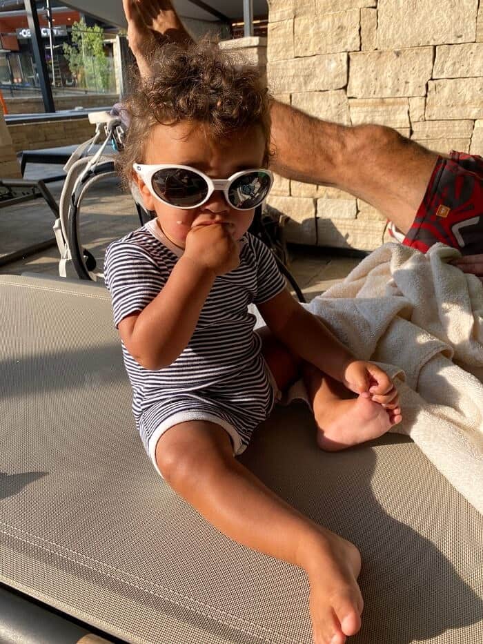 (the cutest little guy, lounging by the pool)