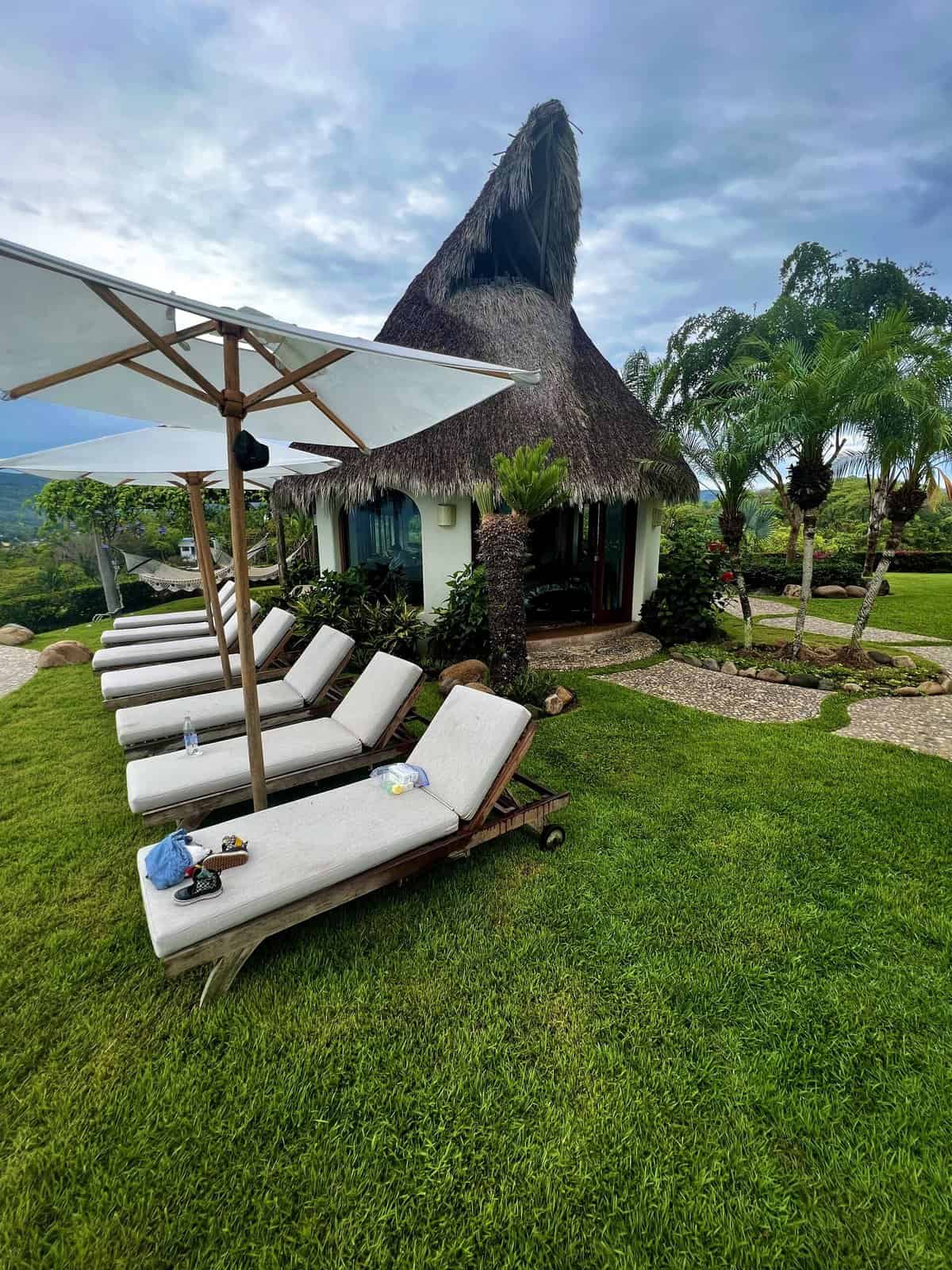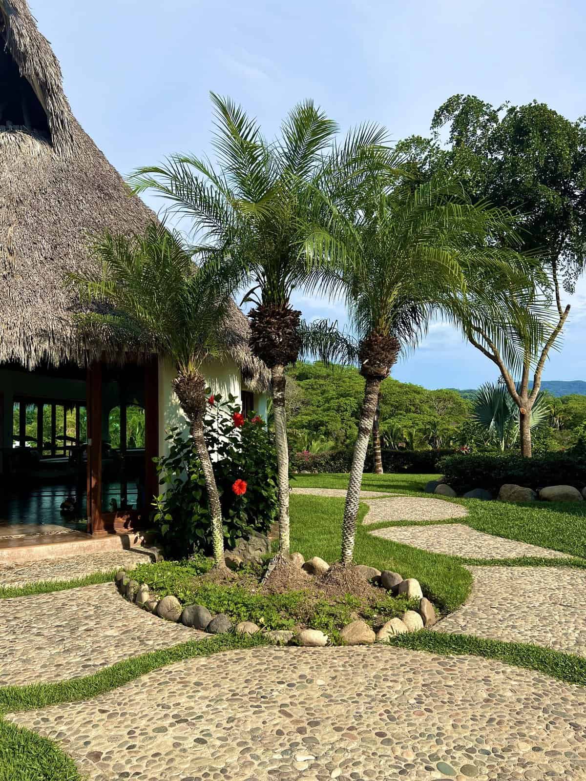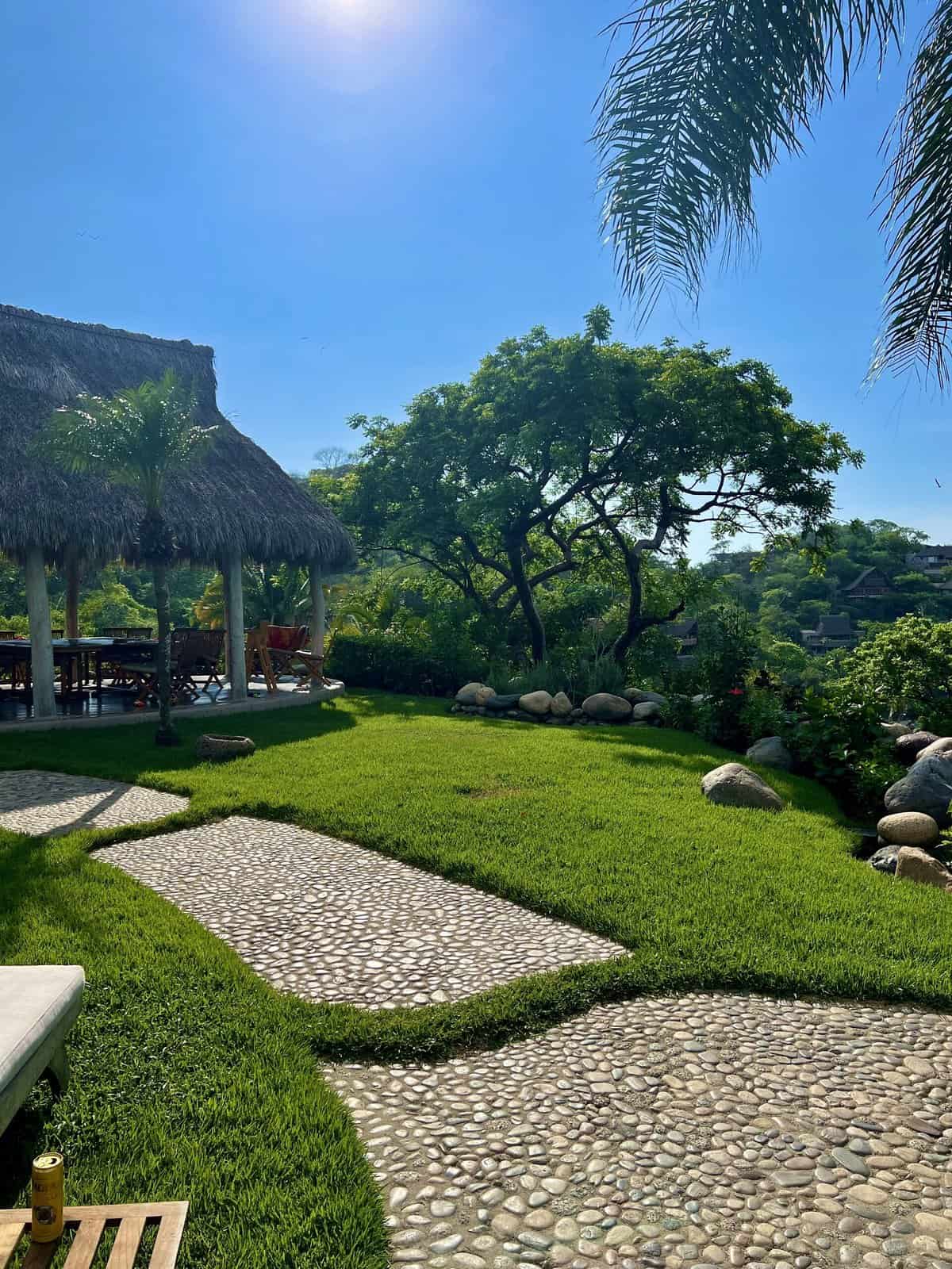The house was really unique in that itโs built into a hill over 5 acres. Instead of one big home, there were three large palapas, all on the top part of the hill. And then smaller individual casitas (which felt super special) that were built into the hill. Asher and I particularly appreciated the bathrooms. Very minimal, chic, and clean, with lots of natural stones and glass. Every Casita was slightly different, but each was so beautiful.