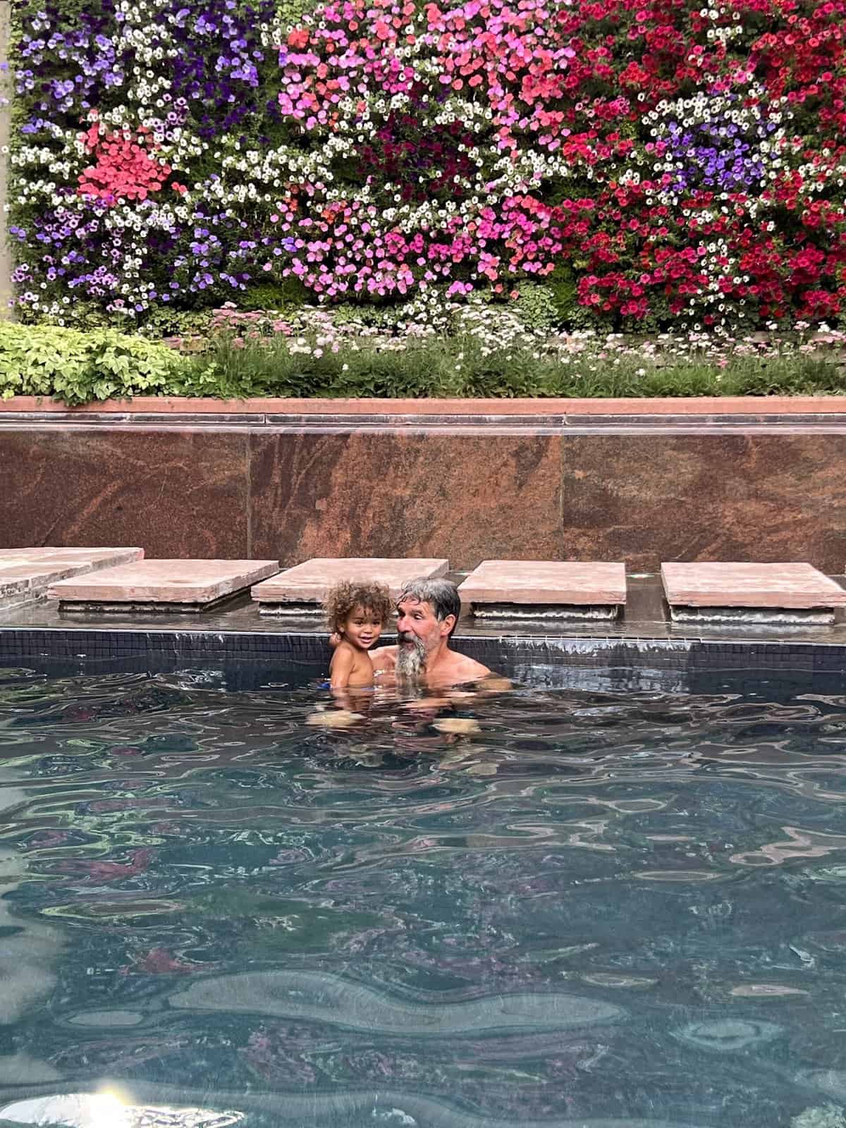 dad and Oslo in the pool