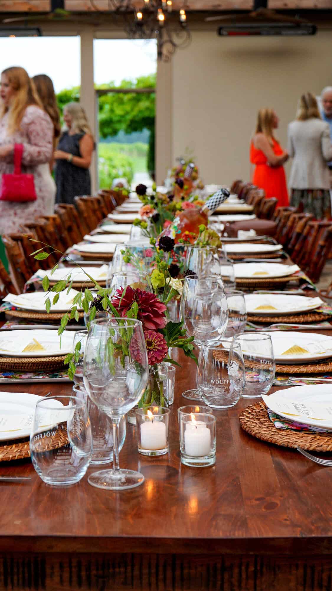 The dinner we hosted was so pretty, and the food was delicious. The menu was inspired by the wineryโs summer Rosรจ, which theyโve become known for. We enjoyed a grilled peach, watermelon, and burrata salad with local New York peaches. There were also seared scallops with corn, lemon herb steak, and strawberry ice cream for dessert. It was so nice! I hope to do more events like this as we get close to the book launch!