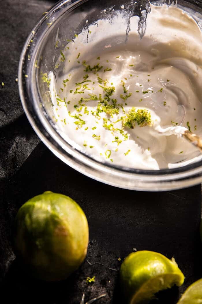 Well, first make the crema. Greek yogurt or sour cream, garlic, lime, and sea salt. I kept it really simple.