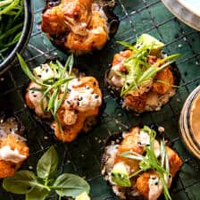 To serve, top with chunks of avocado, then lots of mayonnaise and sriracha and some scallions. Finish with toasted black and white sesame seeds and tamari on the side for dipping!